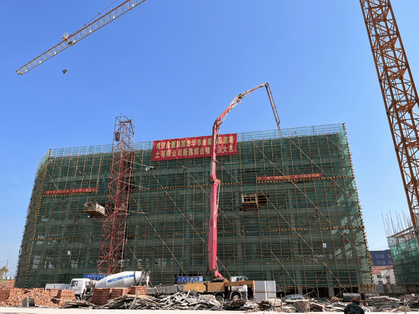 7月23日,金華市金廈商品混凝土有限公司綠色環(huán)保遷建項目綜合辦公大樓順利結(jié)頂,這標志著該項目建設完成了主體工程,距離項目竣工交付又邁進了重要的一步。