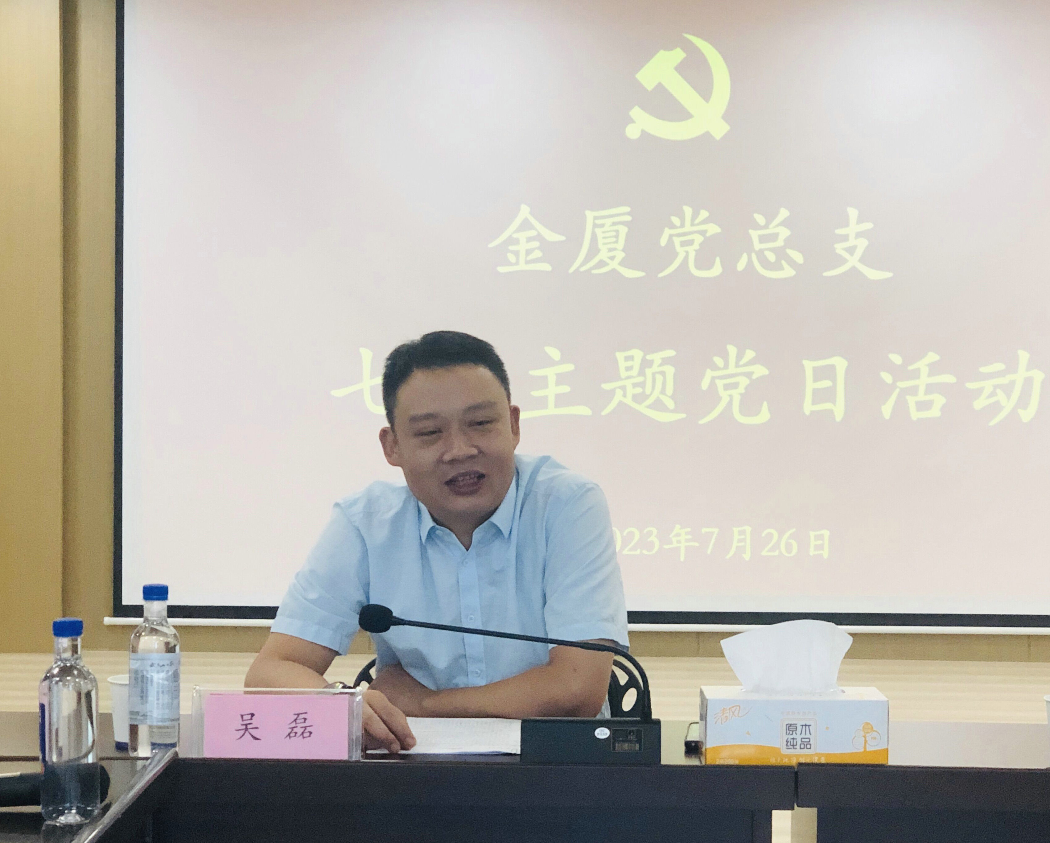 ? 為深入學(xué)習(xí)宣傳貫徹習(xí)近平新時(shí)代中國(guó)特色社會(huì)主義思想和黨的二十大精神,鞏固深化主題教育,激勵(lì)廣大黨員干部在新征程上擔(dān)當(dāng)實(shí)干,7月26日上午,金廈集團(tuán)黨總支部在集團(tuán)會(huì)議室開(kāi)展7月主題黨日活動(dòng)。集團(tuán)總裁、黨總支部書(shū)記傅融出席活動(dòng)并為大家講授主題黨課。公司全體黨員、發(fā)展對(duì)象以及入黨積極分子參加,活動(dòng)由集團(tuán)副總裁、黨總支部副書(shū)記邵建根主持,活動(dòng)當(dāng)日還特邀金東區(qū)委組織部副部長(zhǎng)吳磊蒞臨指導(dǎo)并作專題講座。?